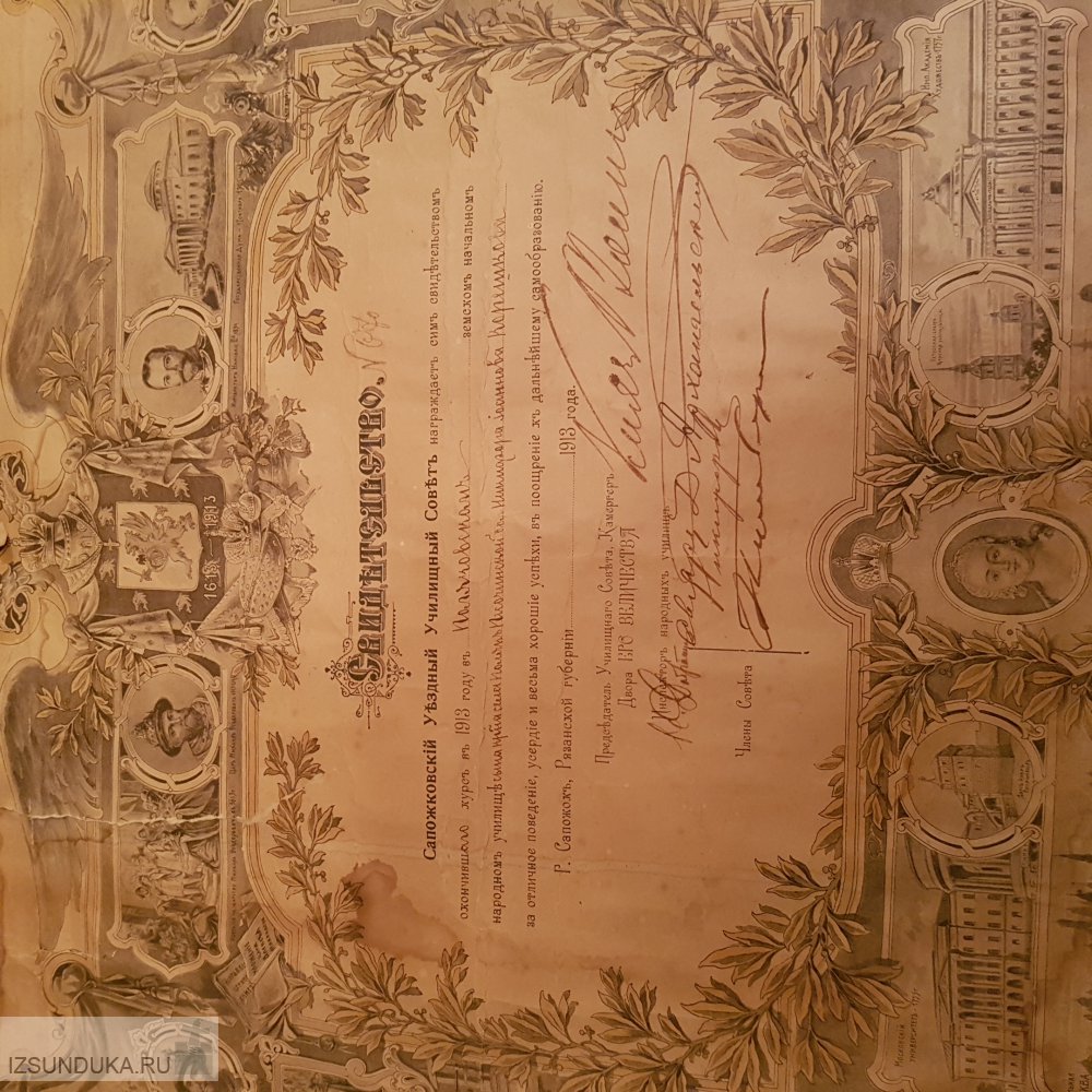 Свидетельство об окончании курса в 1913году.