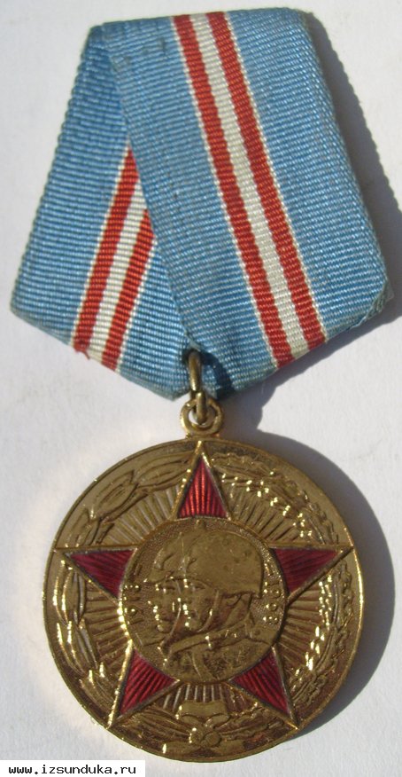Медаль с удостоверением. Юбилейная медаль «50 лет Вооружённых Сил СССР» учреждена Указом Президиума Верховного Совета СССР от 26 декабря 1967 года в ознаменование 50-й годовщины Вооружённых Сил СССР. Автор рисунка медали — художник А. Б. Жук.
